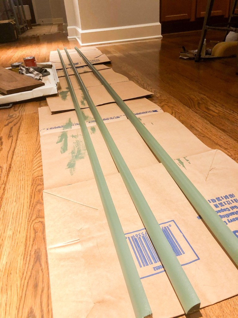 I painted the ends of the boards before nailing them together as it wouldโve been more tedious to paint them once the sign was put together since I staggered the ends.