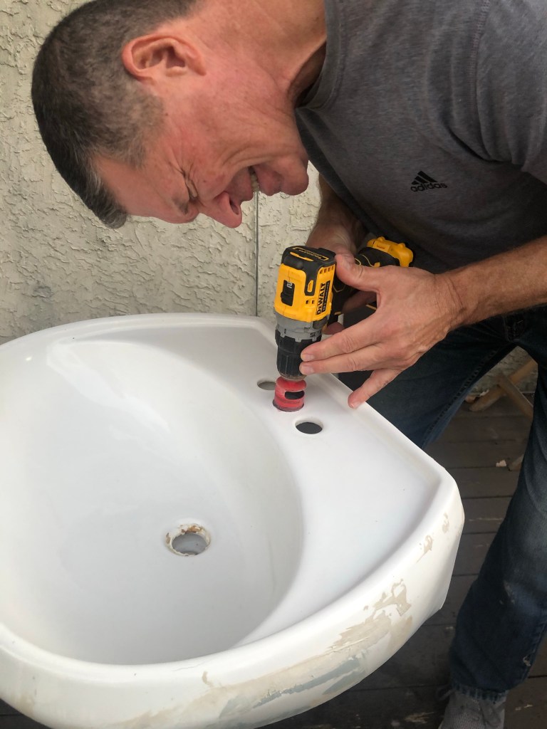 This way we were able to keep our hands far enough away from the saw to be safe. Another note to point out is these pieces are so small that some of them flew off the saw when being cut. We did it on our driveway so it was fine, but you wouldnโt want to make the cuts without safety glasses. Am I inspiring you yet?!? ๐คช๐