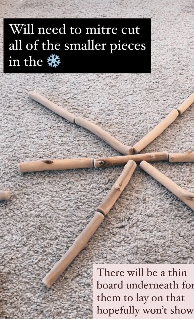 Next I laid out all the mitre cut driftwood sticks into the snowflake.