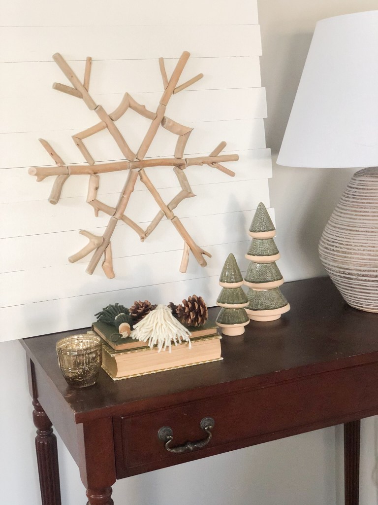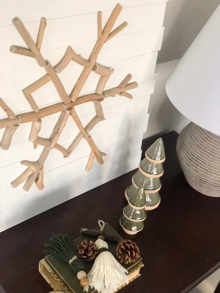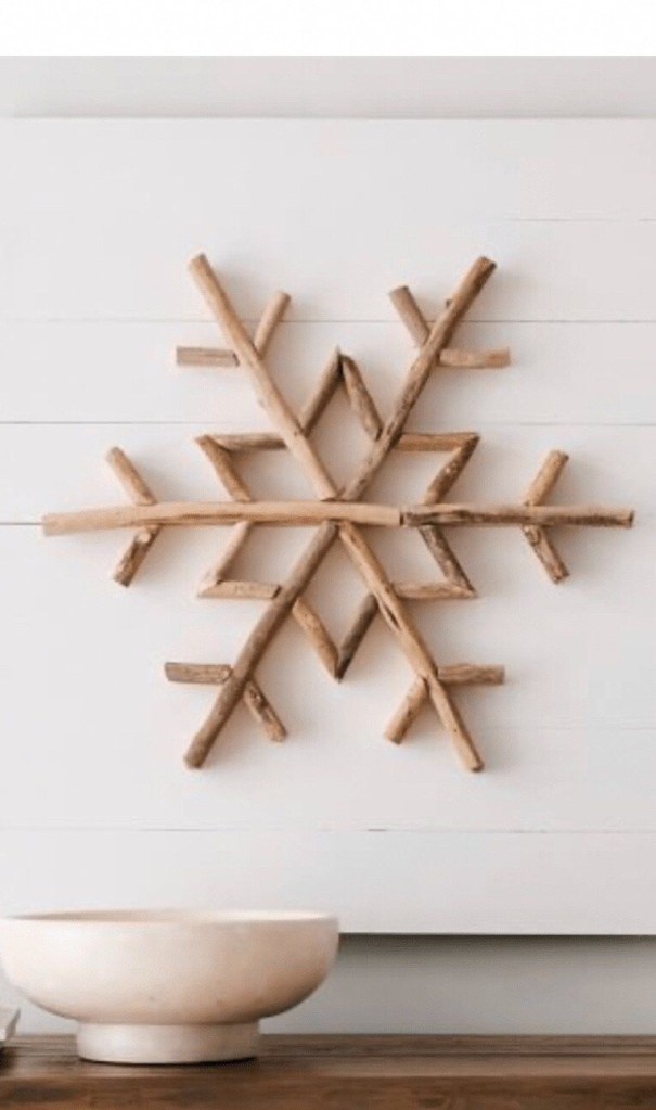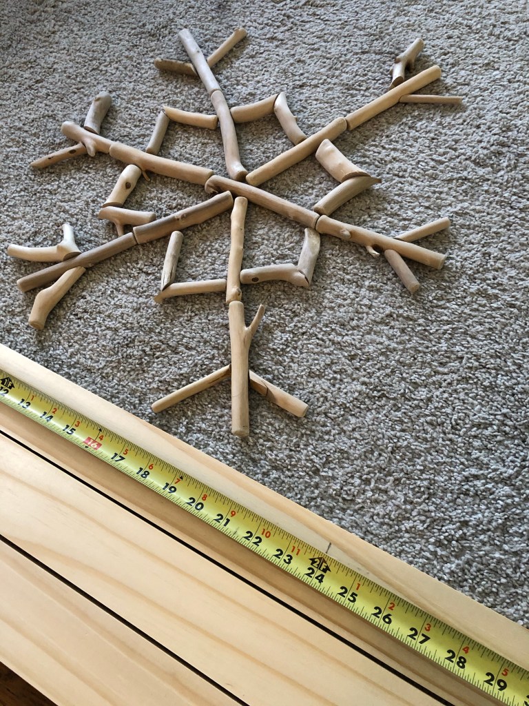 First I laid out the base of the snowflake with the whole driftwood pieces.