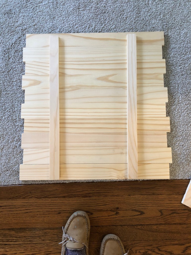 Next is the plank sign. I used 0.5x3x3โ project pine boards and cut them down to 2โ once I knew how big the snowflake was going to be. If I wouldโve known beforehand, I wouldโve bought 2โ pine boards to save myself some mitre saw cuts.